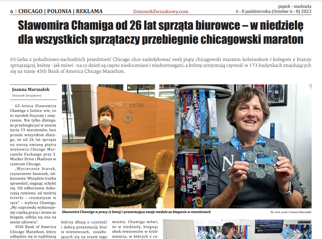 Original article: https://dziennikzwiazkowy.com/chicago/slawomira-chamiga-od-26-lat-sprzata-biurowce-w-niedziele-dla-wszystkich-sprzataczy-przebiegnie-chicagowski-maraton/